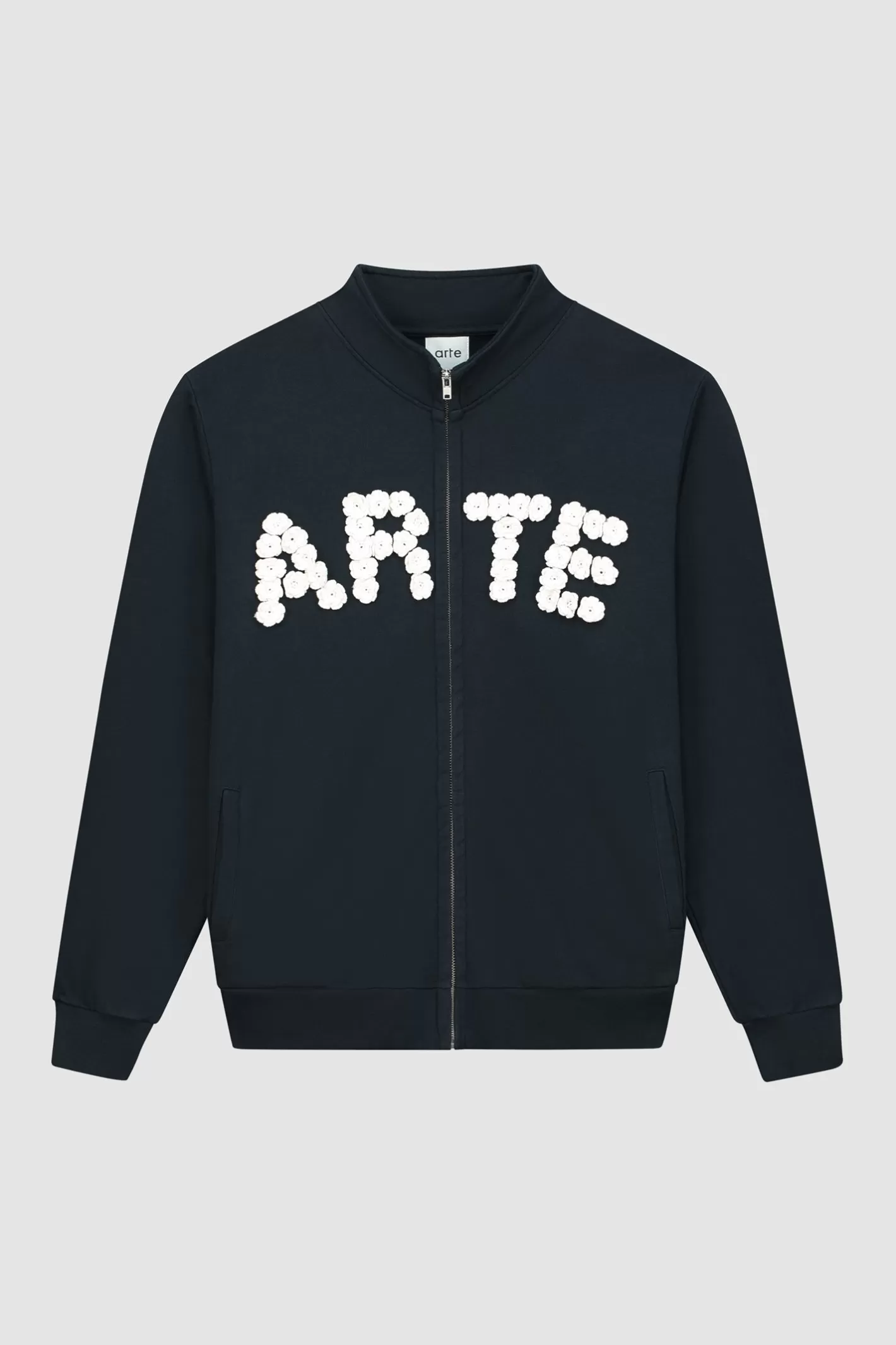 The Crochet Flowers Jacket in navy features the Arte logo made up of crochet flowers. Made from premium cotton, the jacket comes in a relaxed fit with a raised neckline. It has two side pockets, a concealed fulllength zip closure, and elasticated cuffs and hem. Complete the look with the matching Crochet Flower Pants.