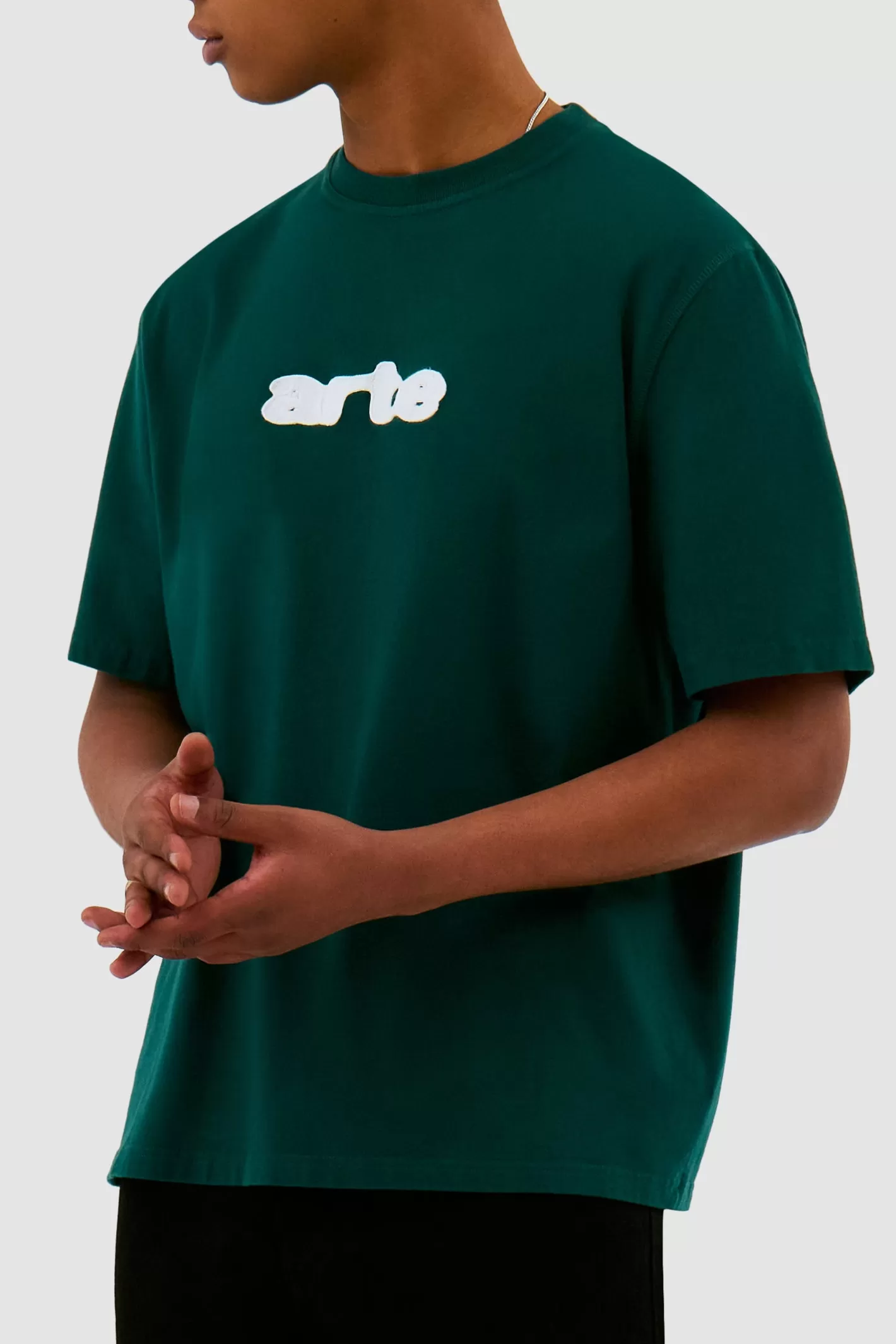 The Blur Embroidery Tshirt in green features the Arte logo in a cord embroidery on the front. Made from premium heavyweight cotton, the tshirt is soft to the touch with a slightly higher neckline and a relaxed fit.