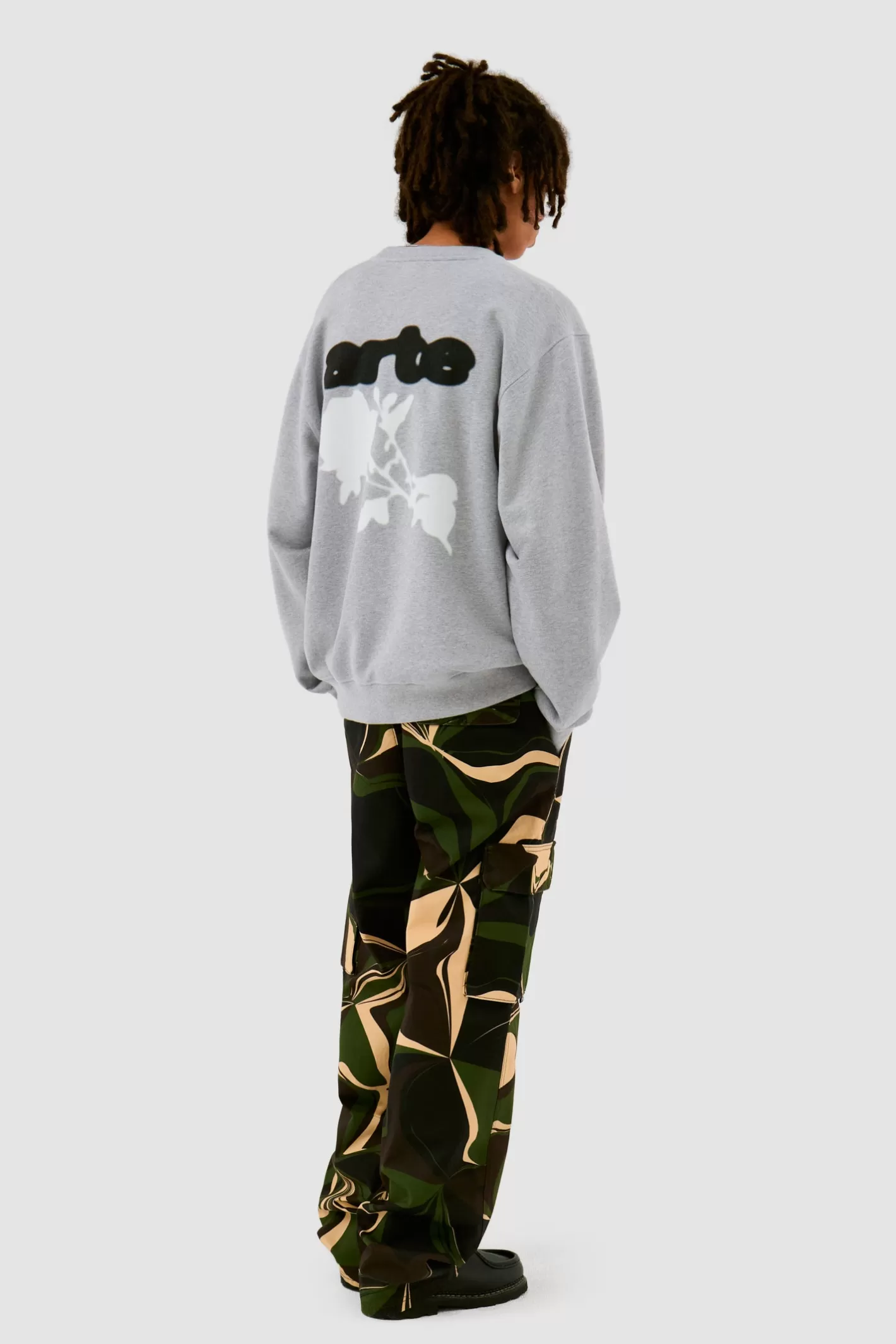 Made from premium cotton, the Blur Flower Crewneck in grey is heavyweight and features a flower graphic on the back and the Arte logo on the left side of the chest. It is soft to the touch and has a relaxed fit.