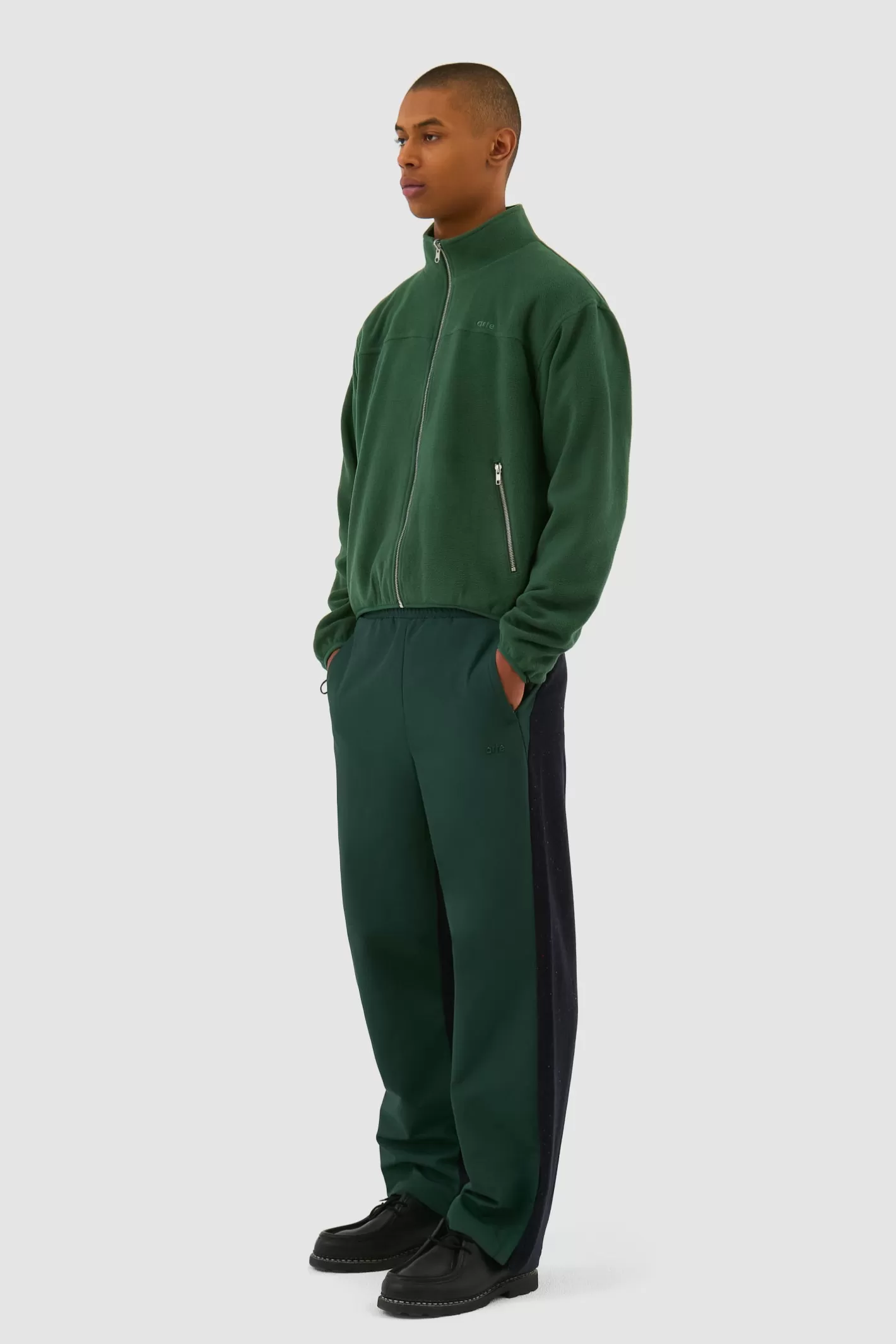 The Wool Technical Jacket’s design consists of contrasting nylon and wool panels. It comes in a navy and green colorway and features two front pockets as well as a fulllength waterrepellant zipper. It is finished with a tonal metal logo on the pocket. Its adjustable drawstring hem ensures the desired fit.