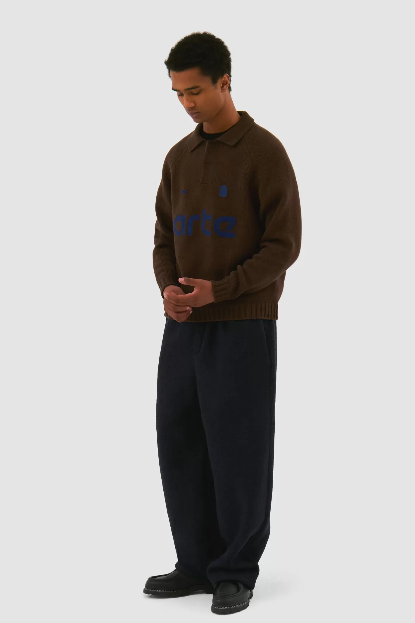 Made from a premium cotton blend, the Football Knit in brown features this season’s take on the Arte logo embroidered across the body. The classic Arte logo as well as a flower graphic can be found embroidered on each side of the chest.