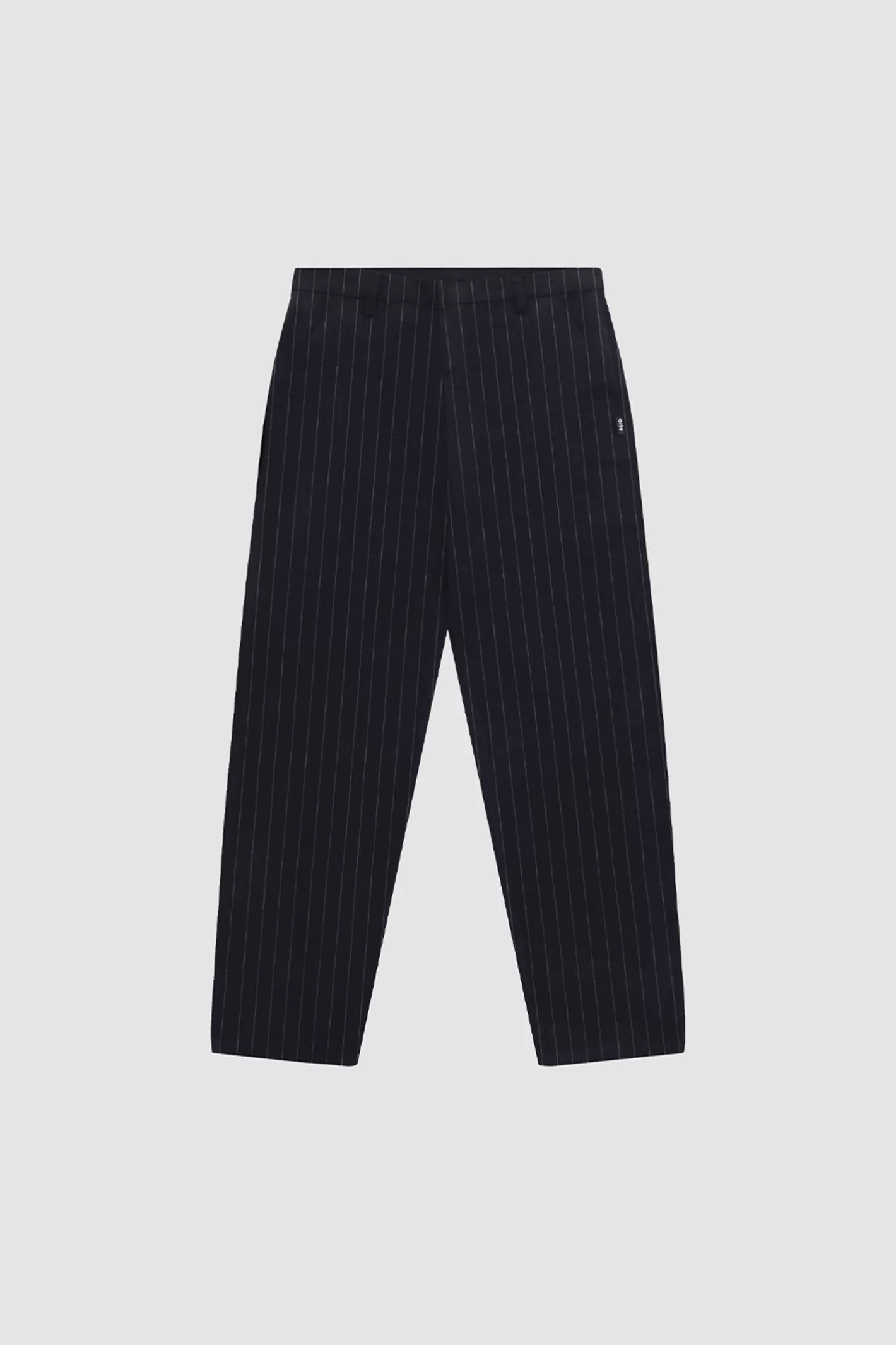 Made from premium wool, the Striped Trousers in navy are this season’s take on a classic pair of suit trousers. They feature a striped pattern and have two side pockets and two back pockets. Lightweight with a relaxed fit, the pants are finished with a woven label on the side.